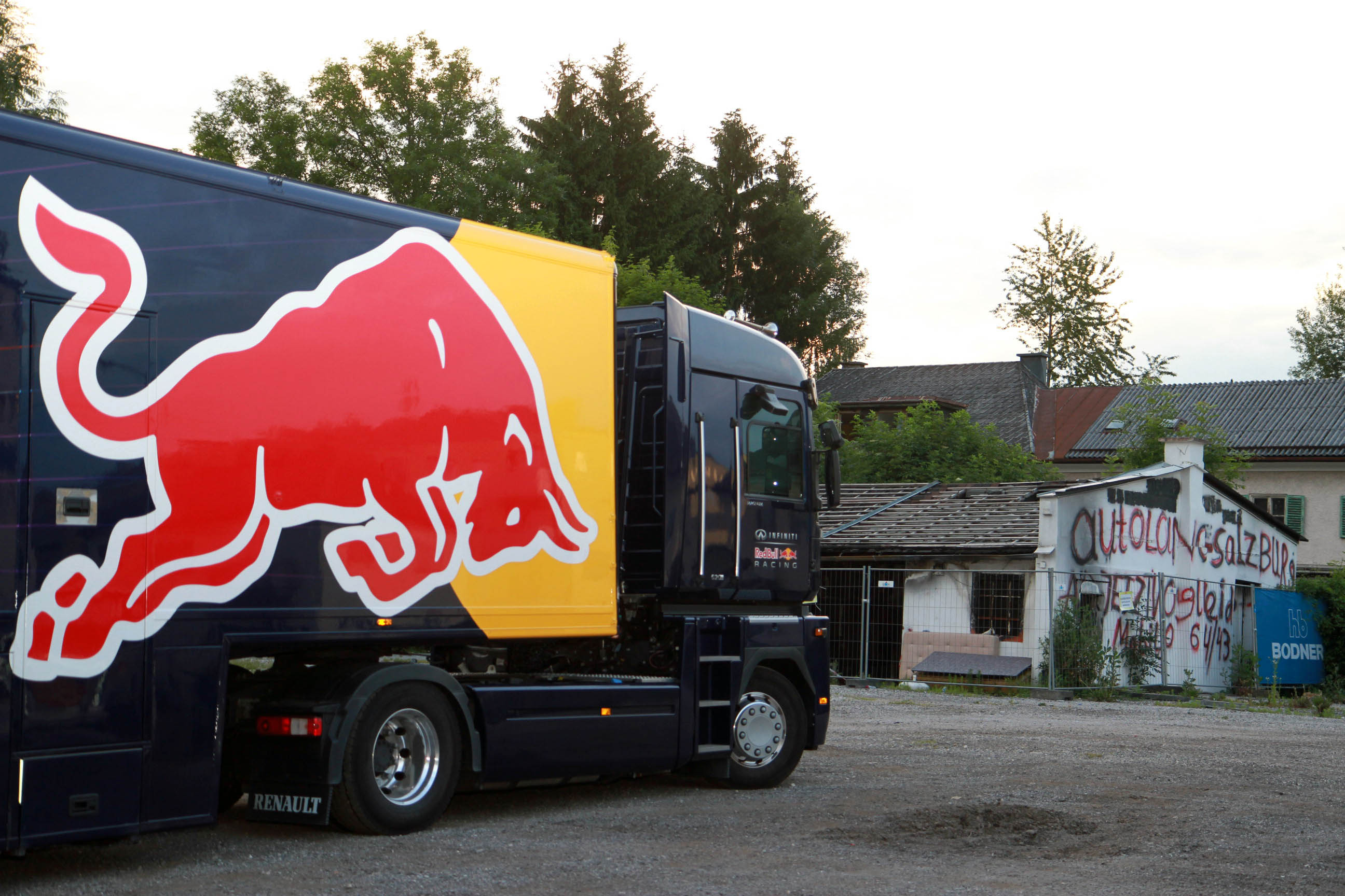 Als Autoabstellplatz für Gebrauchtwagen hat ein Grundstück in Salzburg-Schallmoos schon viele Autos gesehen. Hätte man aber aber darauf gewettet, dass sich hier eines Tages auch der aktuelle Formel-1-Bolide von Weltmeister Sebastian Vettel samt Renntransporter einparken würde, so hätte man damit wohl sehr viel Geld gewinnen können.