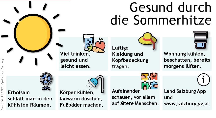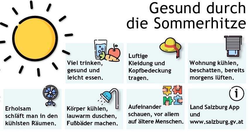 In den kommenden Tagen klettern die Temperaturen tagsüber jeweils über 30 Grad Celsius, am Donnerstag sind laut Meteorologen sogar 35 Grad Celsius vorhergesagt. Die Landessanitätsdirektion hat die wichtigsten Tipps wie man gesund durch heiße Tage kommt.