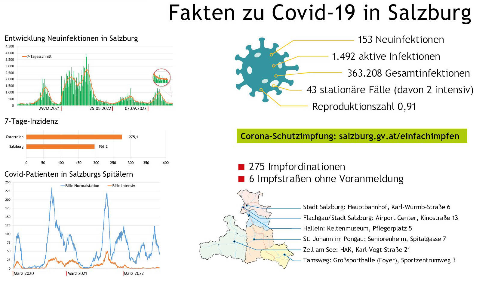 Kurz nach dem Ende der Sommerferien nehmen die statistisch erfassten Corona-Fälle bereits wieder zu. Die aktuelle Lage: 2.077 aktiv infizierte Personen, 45 Covid-Patienten in den Spitälern und eine 7-Tage-Inzidenz von 278,3. Die Dunkelziffer dürfte aufgrund des geringen Testgeschehens aber laut Landesstatistik deutlich höher sein.
