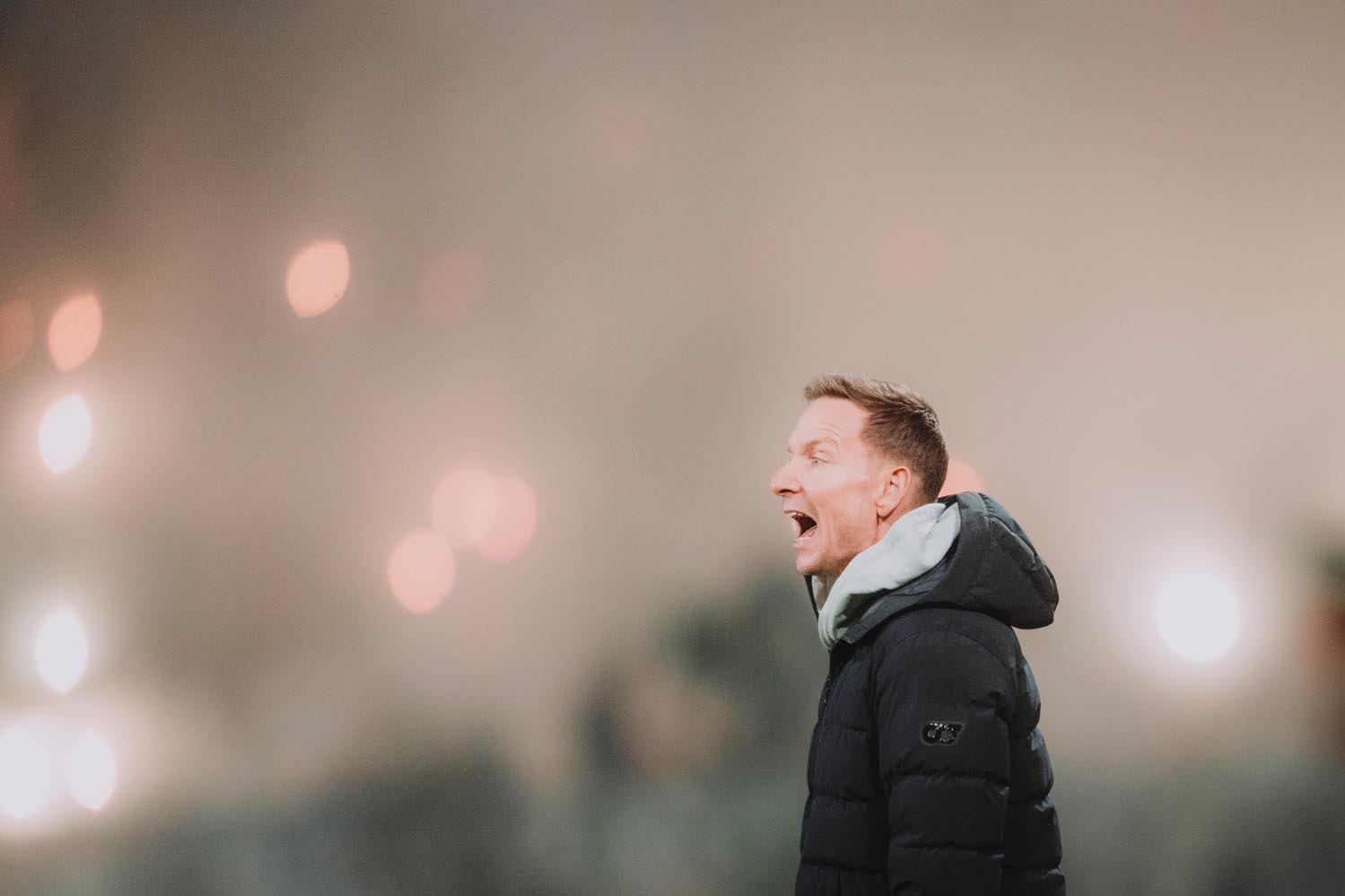 Wie groß Druck und Anspannung bei Bullen Coach Lijnders, zeigte sich auch in dieser Partie wieder: Niederländer zeigt Nerven und gestikuliert nach einem Daghim-Abseits verärgert in Richtung Schiedsrichter. Dafür kassiert der Niederländer die gelbe Karte und zeigt dafür wenig Verständnis.