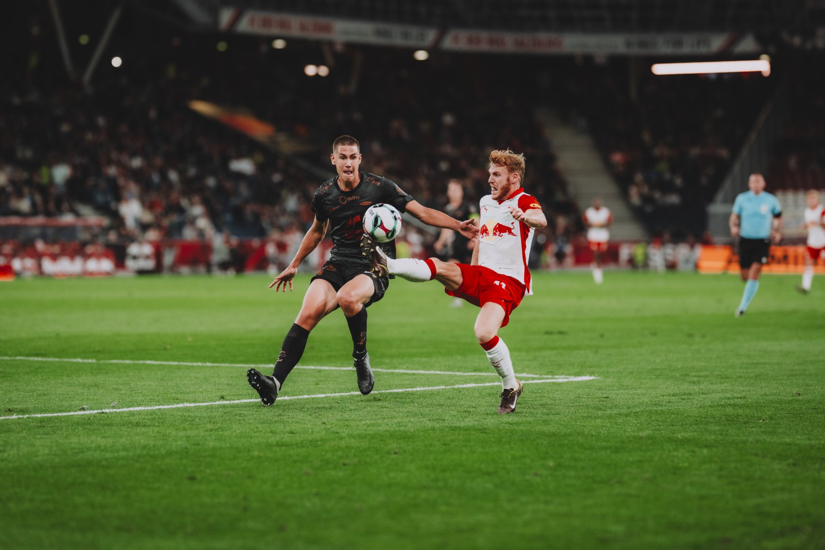 Vor 11.949 Zuschauern gibt es zunächst gleich einmal die sprichwörtlich kalte Dusche für die Hausherren. Da hilft auch das neue Grün in der Red Bull Arena wenig. In der spielfreien Zeit wurde auf einem komplett sanierten Unterbau wieder einmal ein neuer Rasen verlegt. Schon nach drei Minuten gehen die Gäste durch einen Treffer von Emil Kornvig in Führung. Doch Maurits Kjaergaard bringt die Bullen gleich drei Minuten später wieder zurück, indem er via Freistoß zum Ausgleich trifft.