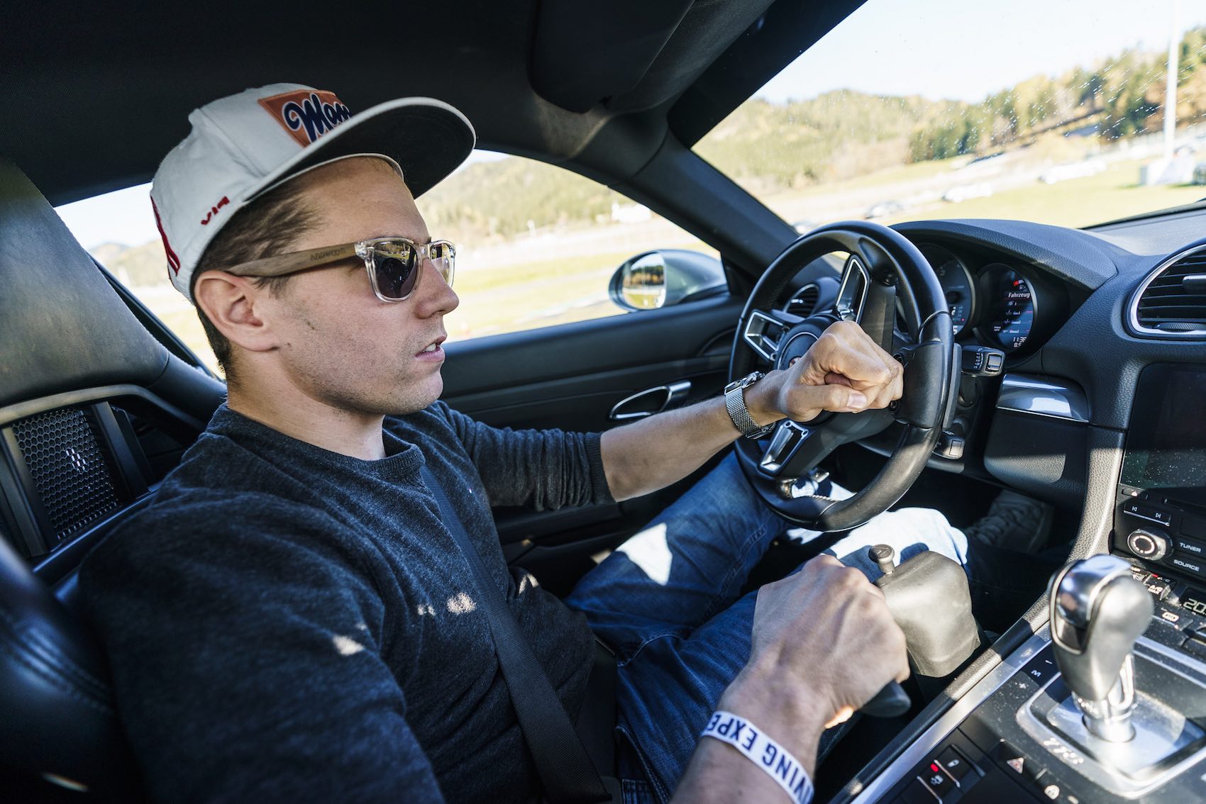 Auch Super-Adler und Motorsport-Fan Thomas Morgenstern war am Sonntag am Spielberg zu Gast, um das neue Fahrerlebnis als „Fußgänger“ auszutesten. Nach einer Einführung im Driving Center mit Bremsübungen und beim Slalom wurde die Schlagzahl beim Driften und im Handling-Parcours deutlich erhöht. Bestens vorbereitet ließen sich die Teilnehmer schließlich bei den Jungfernfahrten am Red Bull Ring ordentlich in die Porsche-Sitze pressen. „Es war wirklich Weltklasse, mit diesen Sportwagen auf einer echten Rennstrecke zu fahren, die Geschwindigkeit und die 3- bis 400 PS zu spüren. Die Bedienelemente sind perfekt eingebaut, es fühlt sich einfach genial an“, war sich Lukas Müller mit seinen Sportler-Kollegen einig.