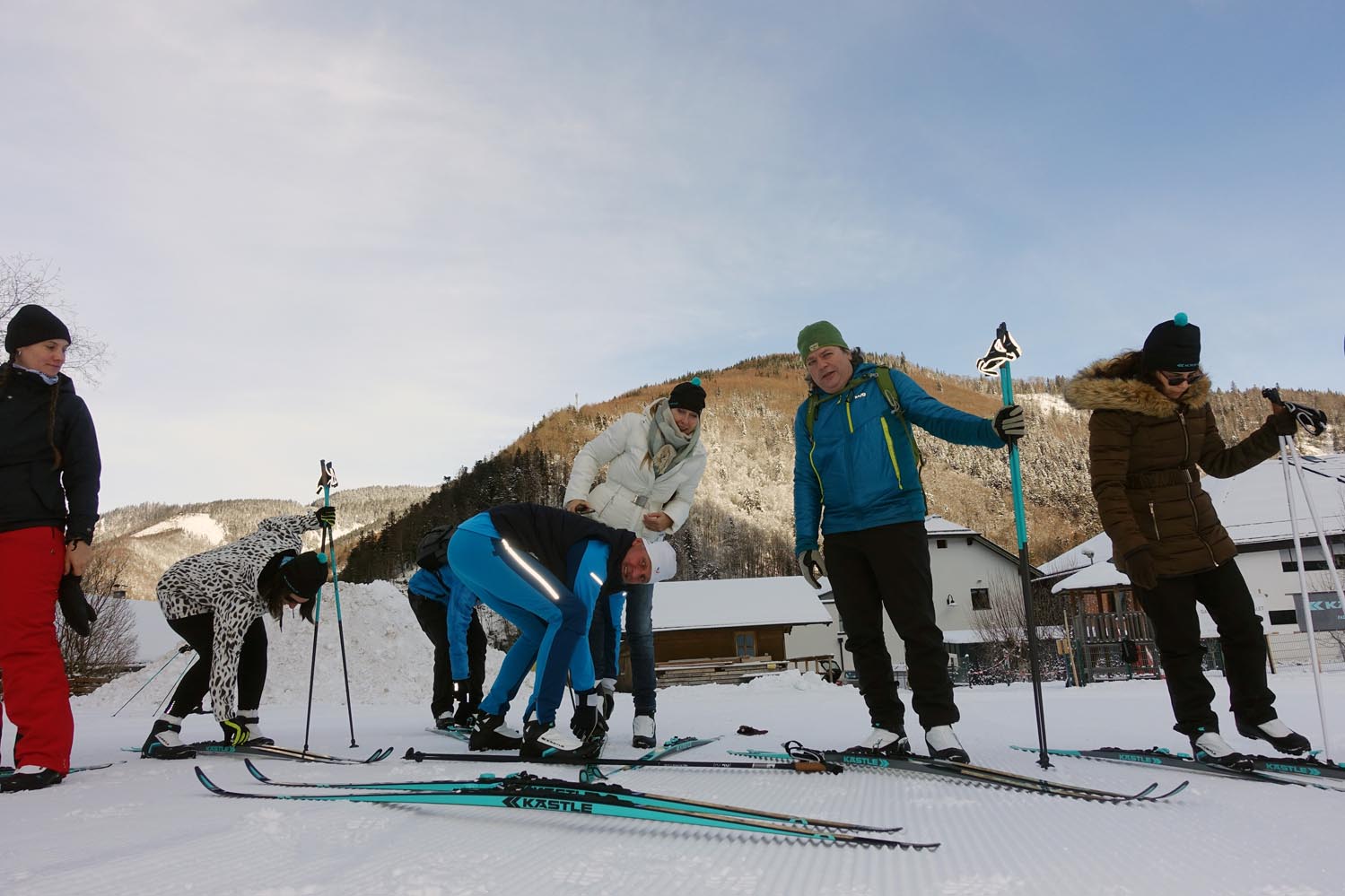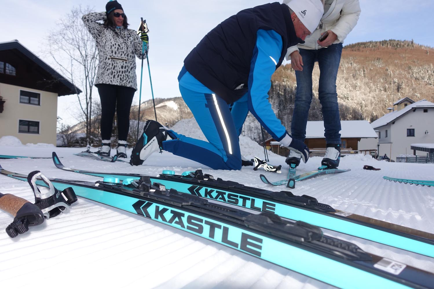 Bei Kästle stetzt man in der Langlaufsparte übrigens auf das Comeback der Fellski. Diese Technik ersetzt den Schuppenski. Der kleine Fellteil am Belag verhindert das Zurückrutschen der Skier, vor allem bei Bergaufpassagen. Tipp vom Profi: Das Fell sollte gelegentlich mit Silikon eingesprüht werden. Das verhindert Vereisen und somite ein Zurückrutschen.