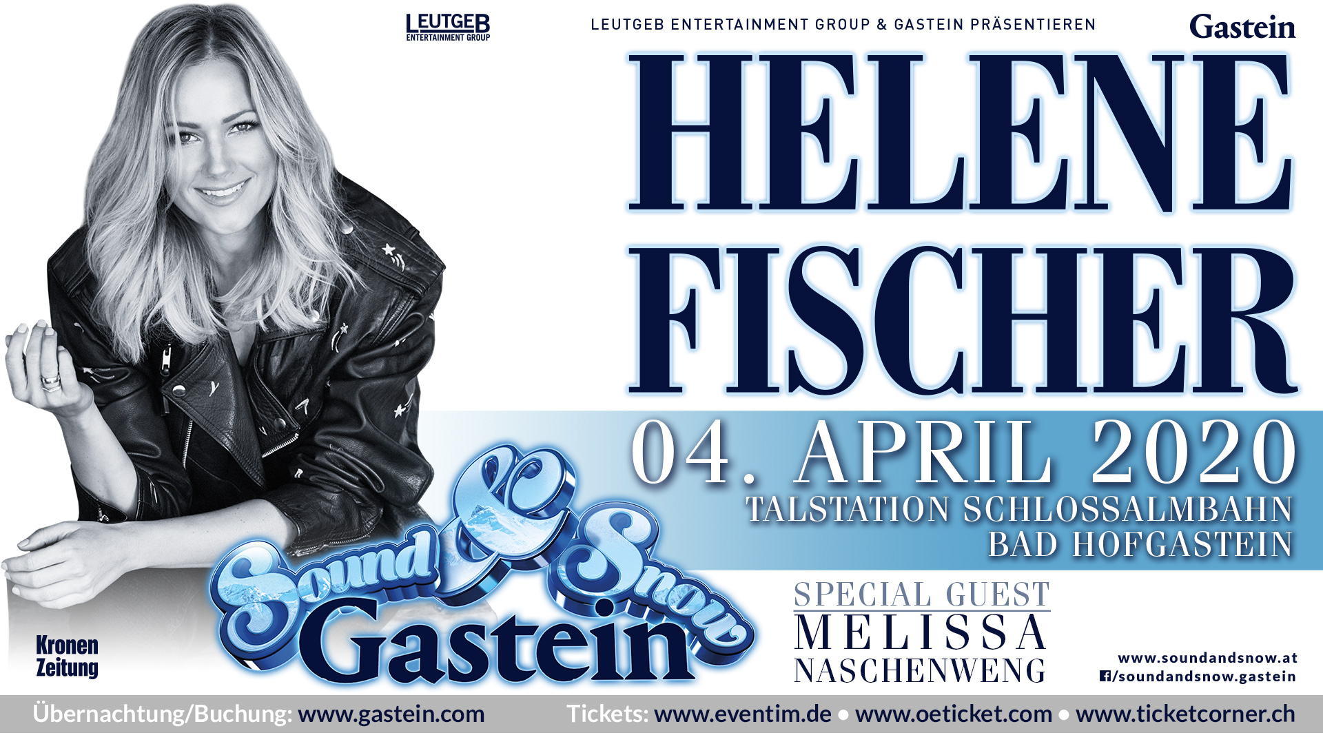 HELENE FISCHER hat eine beispiellose Karriere hingelegt und schafft es mit ihren Songs wie kaum jemand anderer generationenübergreifend ihre Fans zu begeistern. Dazu kommt ihre Fähigkeit, Genres gekonnt zu mischen und der deutschsprachigen Musik ein neues, attraktives Gewand zu verleihen. Mit ihren Konzerten entfacht HELENE FISCHER bei ihren Fans immer wieder aufs Neue ein Feuerwerk der Emotionen. HELENE FISCHER ist in und angesagt, denn wie keine andere Künstlerin im deutschsprachigen Raum vermag sie es, bei ihren Konzerten ihre Fans immer wieder aufs Neue in Staunen zu versetzen und zu Begeisterungsstürmen hinzureißen. Dabei ist HELENE FISCHER stets bodenständig und ein Star zum Anfassen geblieben und gerade für diese ehrliche Mentalität wird Sie von ihren Millionen Fans geschätzt und geliebt. Der, bis jetzt mit insgesamt 17 ECHOS ausgezeichnete, Superstar wird am 04. April 2020 das Gelände am Fuße der neuen Schlossalmbahn mit Sicherheit in einen brodelnden Hexenkessel verwandeln und für eine einmalige Konzert-Sensation 2020 sorgen.