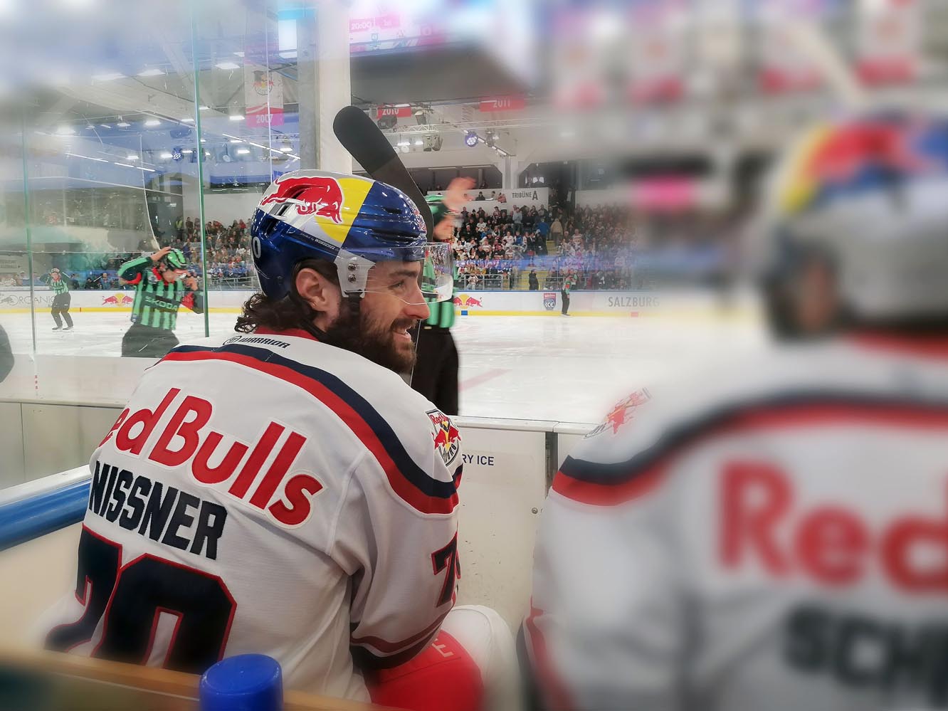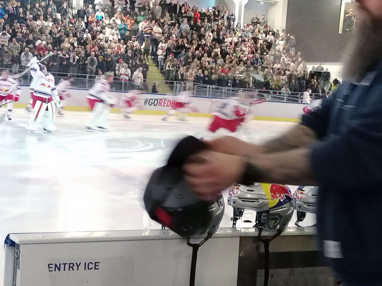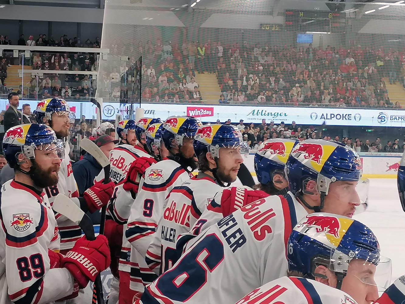 Im zweiten Abschnitt waren genau 45 Sekunden gespielt, da kam Tyler Lewington plötzlich allein vorm Tor an die Scheibe und netzte trocken ein (21.). Im Nachgang hatten die Hausherren noch weitere dicke Chancen. Aber die Partie wurde wieder zu einem Auf und Ab mit wechselnden Möglichkeiten. Atte Tolvanen war bei einem 2 auf 1-Konter auf dem Posten (26.). Beide Teams drückten aufs Tempo, neutralisierten sich aber zumeist gegenseitig. Und wieder hatte der KAC zum Drittelende hin die besseren Szenen, schoss zwei, dreimal höchst gefährlich aus der Distanz. Aber die Red Bulls trafen wieder eiskalt. Lucas Thaler erkämpfte die Scheibe vor dem Tor und schob selbige dem Goalie durch die Schoner ins Netz – 3:0. Das war auch der Pausenstand nach 40 Minuten.